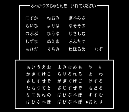「復活の呪文を入れてください」